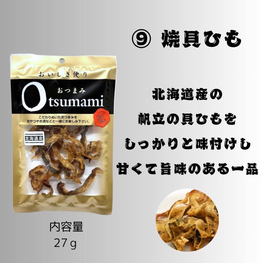 噛めば噛むほど旨味が広がる「さきいか」や「焼あじ」、磯の香りがたまらない「焼貝ひも」など、