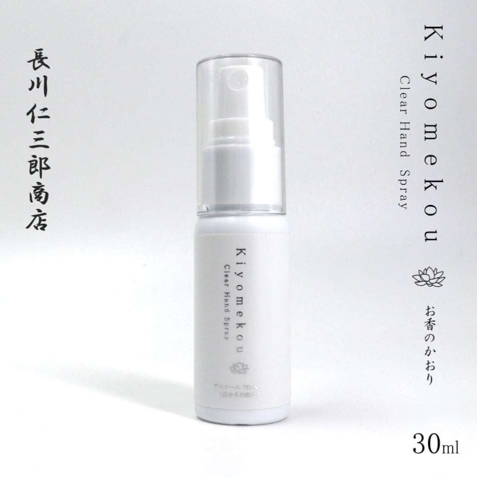 お香屋さんが作った「 きよめ香 」携帯用アルコールスプレー 30ml アルコール75%配合 天然白檀オイル配合 携帯 バッグ 塗香 手指消毒 白檀 かっ香 丁子 漢薬オイル ヒアルロン酸配合 浄化 お清め香 ハンドローション 白檀オイル【長川仁三郎商店】日本製