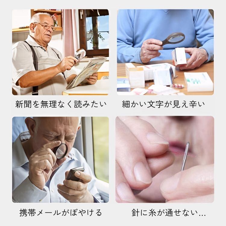 ルーペですので、車の運転や歩行など遠くをみる必要がある時には、危険ですので、決して使用しないでください。