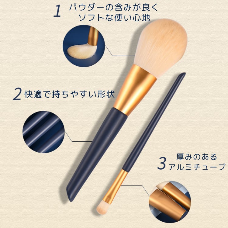 ・メイクブラシは、週に1回程度お手入れしていただくとより清潔に使用していただけます。お手入れ方法は、ぬるま湯でクリーナー又は少量の中性洗剤等でブラシの毛の向きに沿って洗浄し、汚れが落ちたら良くすすぎ、残った水分を拭き取って下さい。